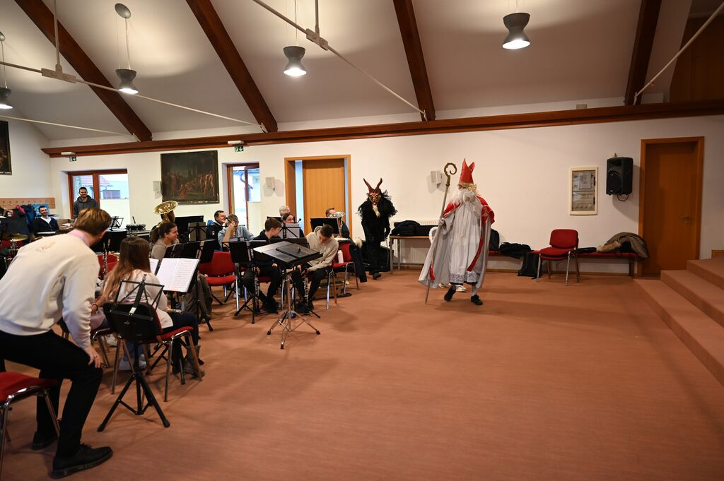 V soboto, 6. decembra dopoldne, je godbenice in godbenike med intenzivnimi vajami za februarski Plesni večer na Dobrovi obiskal sv. Miklavž z angelčkom in dvema parkljema. Prihod je bil nepričakovan, še posebej pa so jih presenetila darila, ki jih je prinesel s seboj.