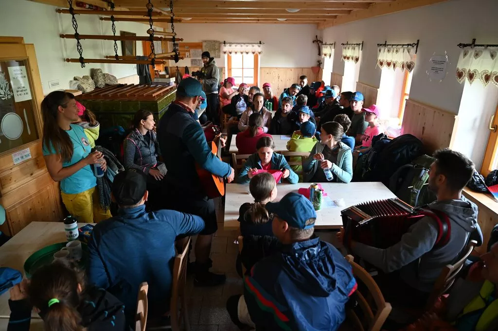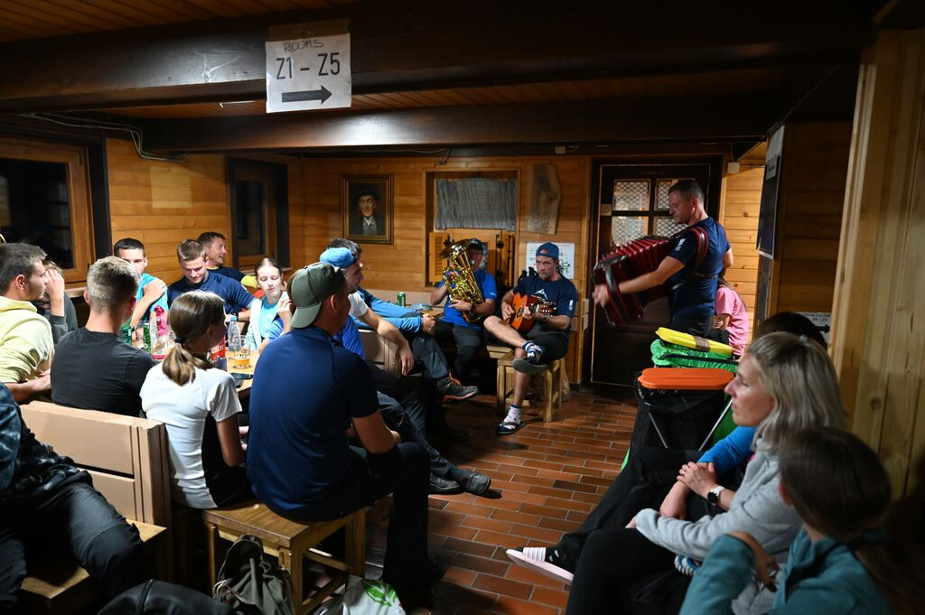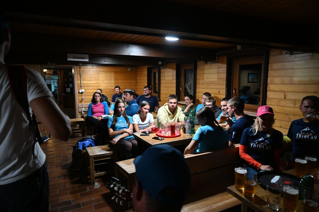 Varen sestop z gora, topel obrok in čas za spanje. No, spanje je bilo za nekaj posameznikov – večina se je kljub utrujenosti še družila ob družabnih igrah in slovenskih glasbi, ki je odmevala še pozno, pozno v noč. Kot pravijo se je na večer odvijal res čudovit, eden lepših slovenskih večerov v kočah, kar jih je kdaj bilo. Čeprav so naši udeleženci pozno v noč igrali in prepevali, zjutraj bujenje ni bilo težko, saj je zvok budilke zamenjal glas helikopterja, ki je v vsakem pohodniku zbudil zanimanje ”kaj misliš, da je helikopter ravno pripeljal?”.